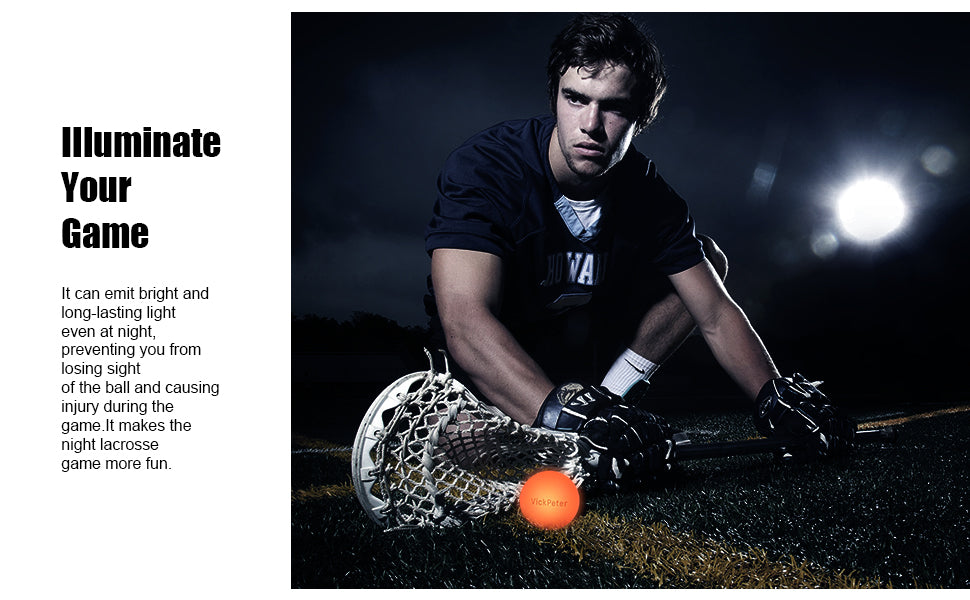 - 【GLOW IN THE DARK LACROSSE BALL】VICKPETER glow in dark lacrosse ball light up lacrosse ball to allows the lacrosse game continue at night.The lacrosse ball is equipped with LED lights, which can emit bright and long-lasting light even at night, preventing you from losing sight of the lacrosse ball and causing injury during the game.It can be used as lacrosse training ball at night which makes the night lacrosse practice more fun! Perfect lacrosse coach gifts!